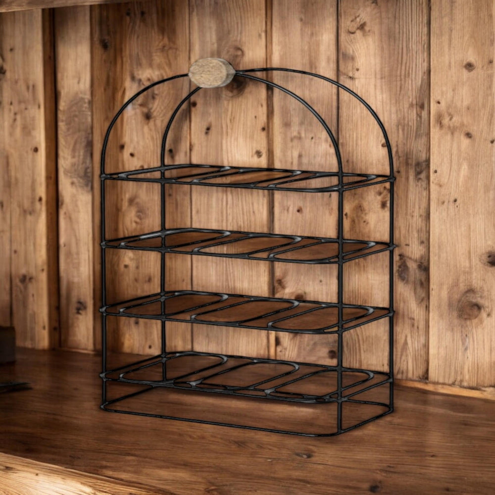 A delightful, hand cast iron effect wine rack with stunning ornate side detail. This heavy and beautifully designed piece will hold 12 full bottles of your favourite tipple and is available in natural cast iron effect