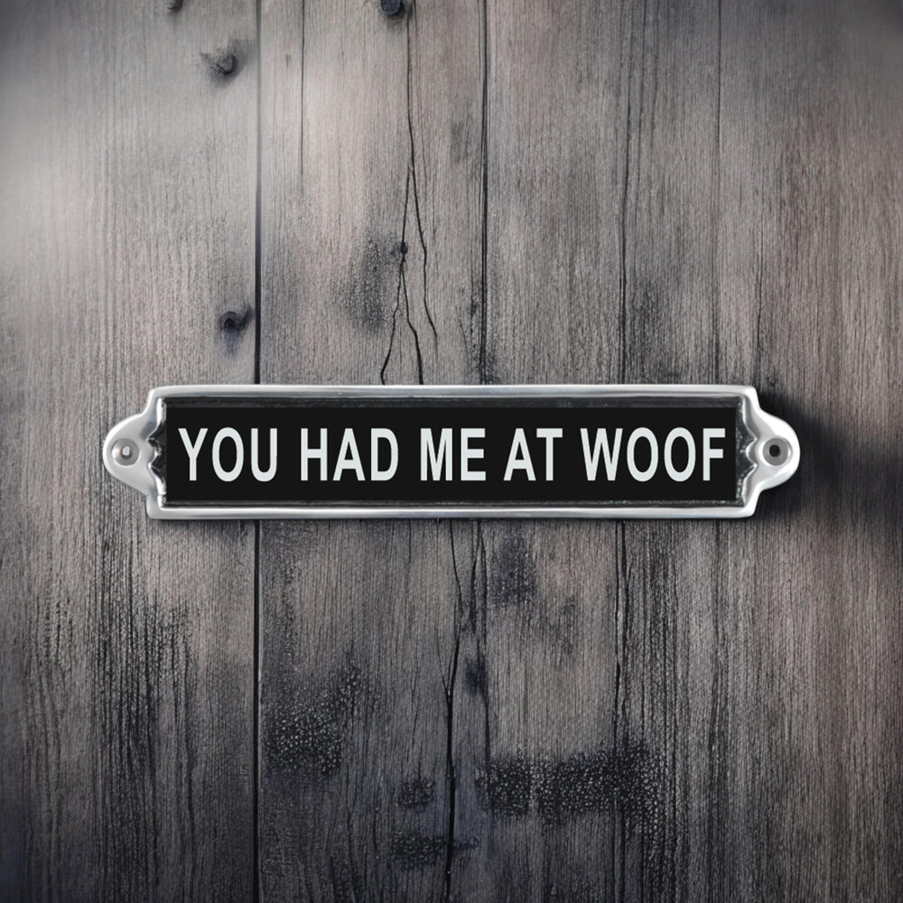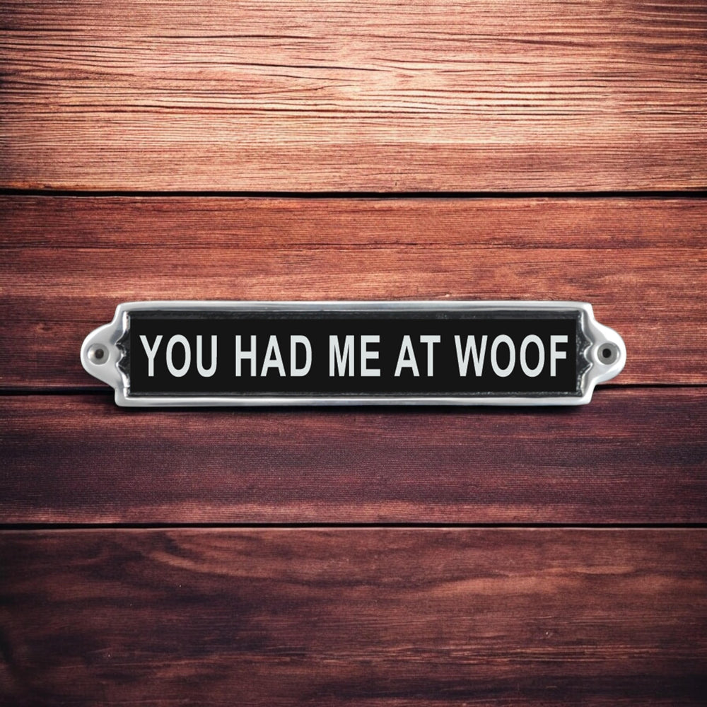 This metal door sign is small and slim