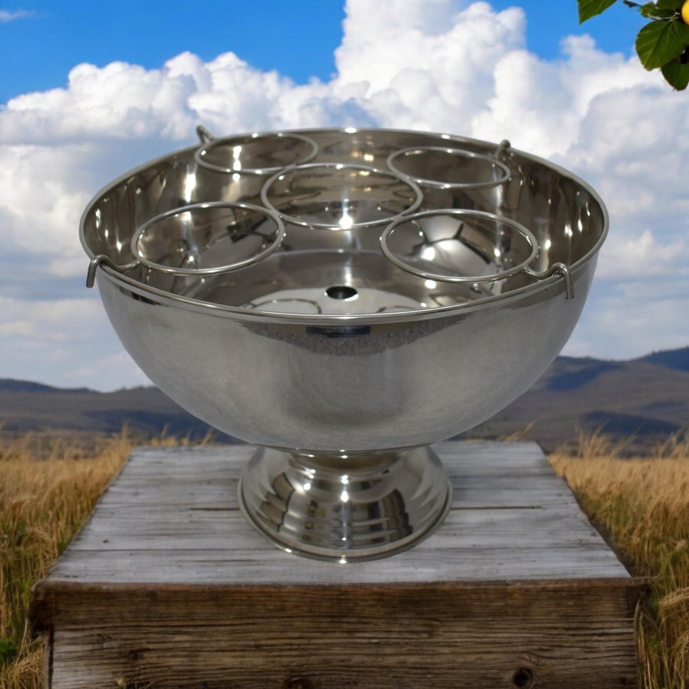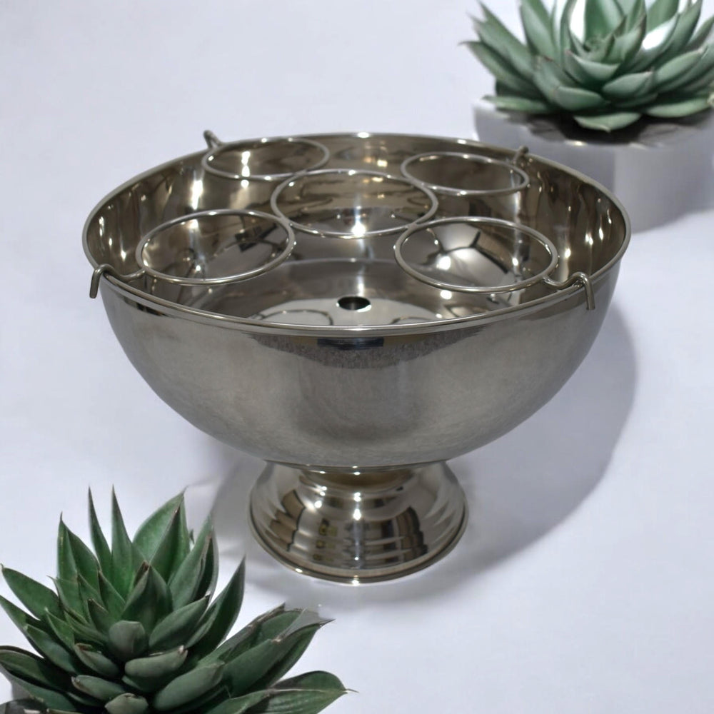 This nickel-plated champagne bucket exudes elegance and sophistication, perfect for upscale gatherings or intimate celebrations. The smooth, reflective nickel finish gives it a sleek, polished appearance, enhancing the luxurious vibe of any occasion. Its sturdy, cylindrical design ensures durability, while the wide opening accommodates a bottle of champagne with ease, surrounded by ice to maintain the perfect chill. The combination of timeless metallic shine and practicality makes it both a functional and stylish accessory for any event