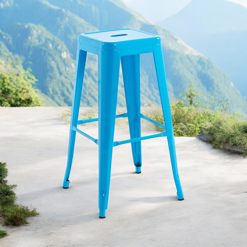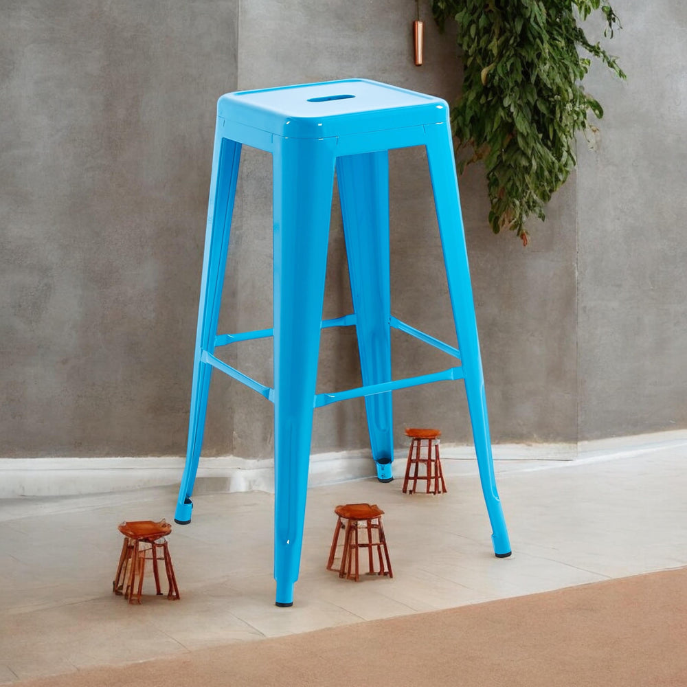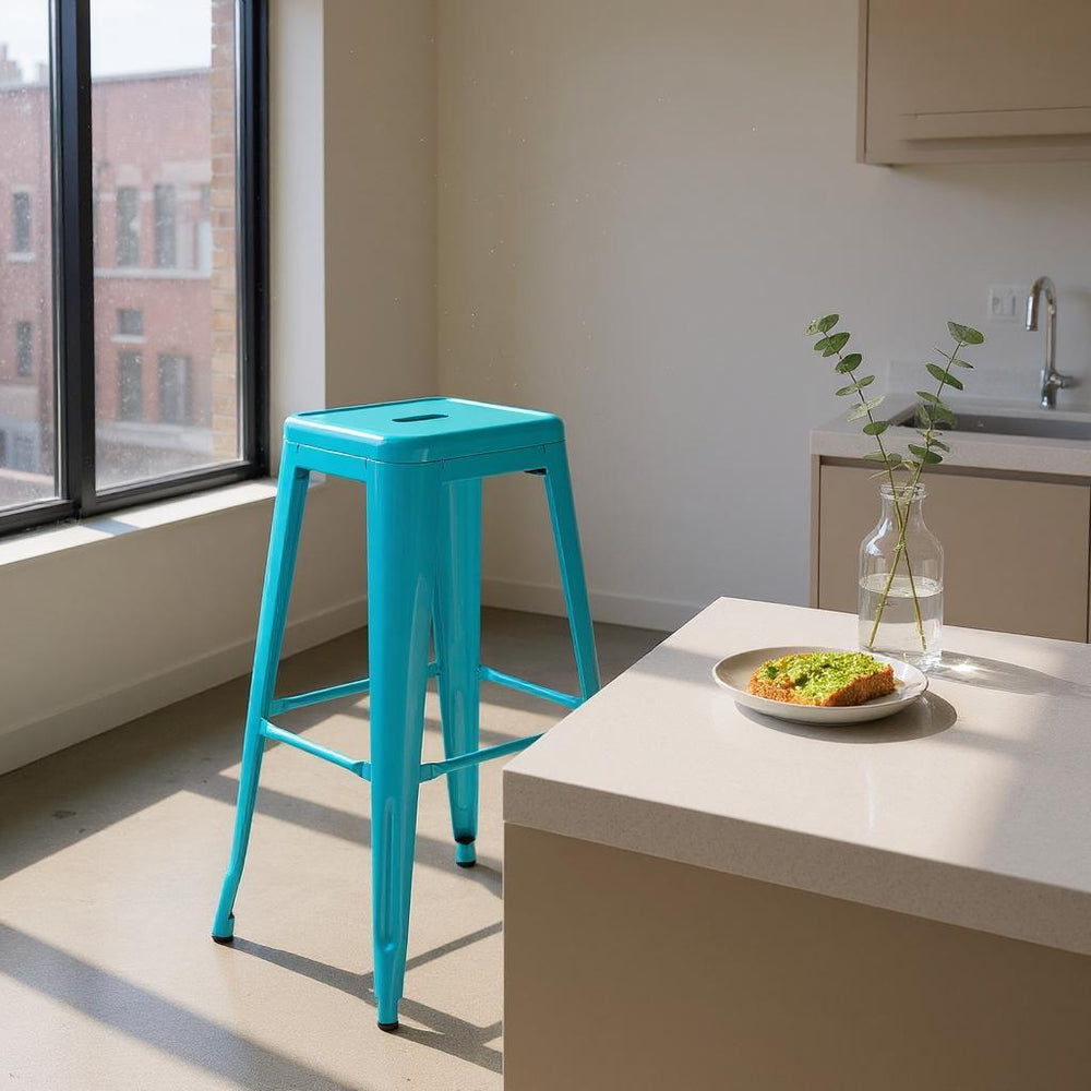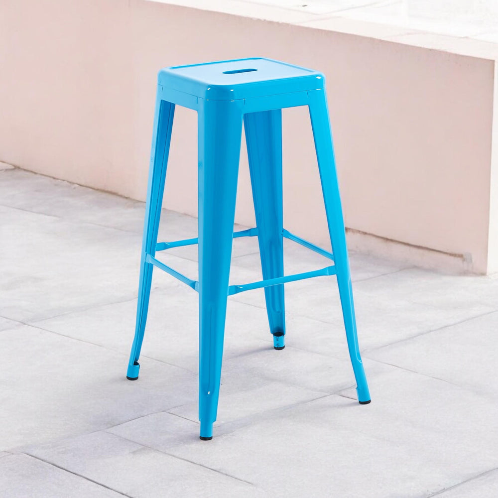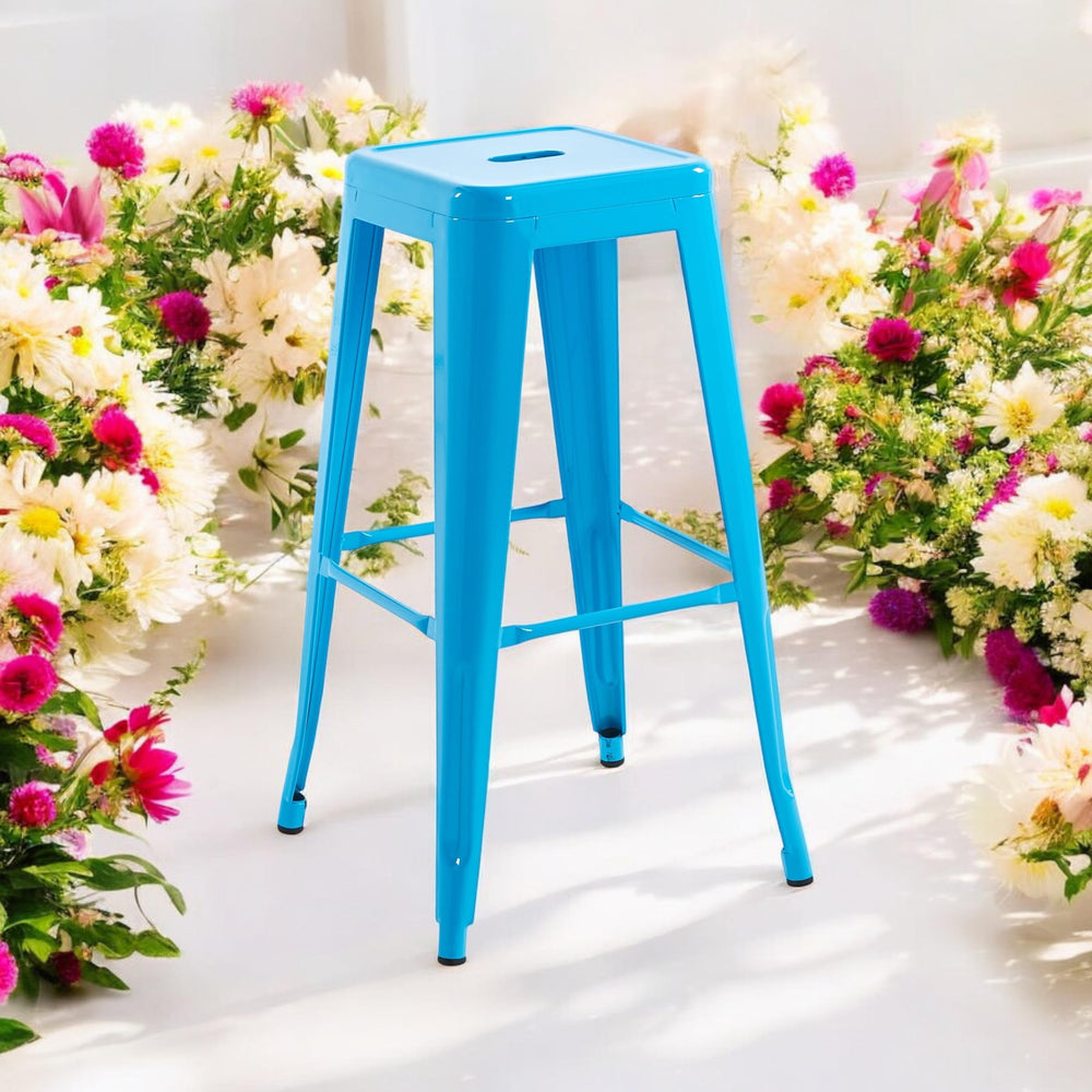 Take a look at this wonderful barstool in steel. It is a practical, comfortable, stable, and weather-resistant construction