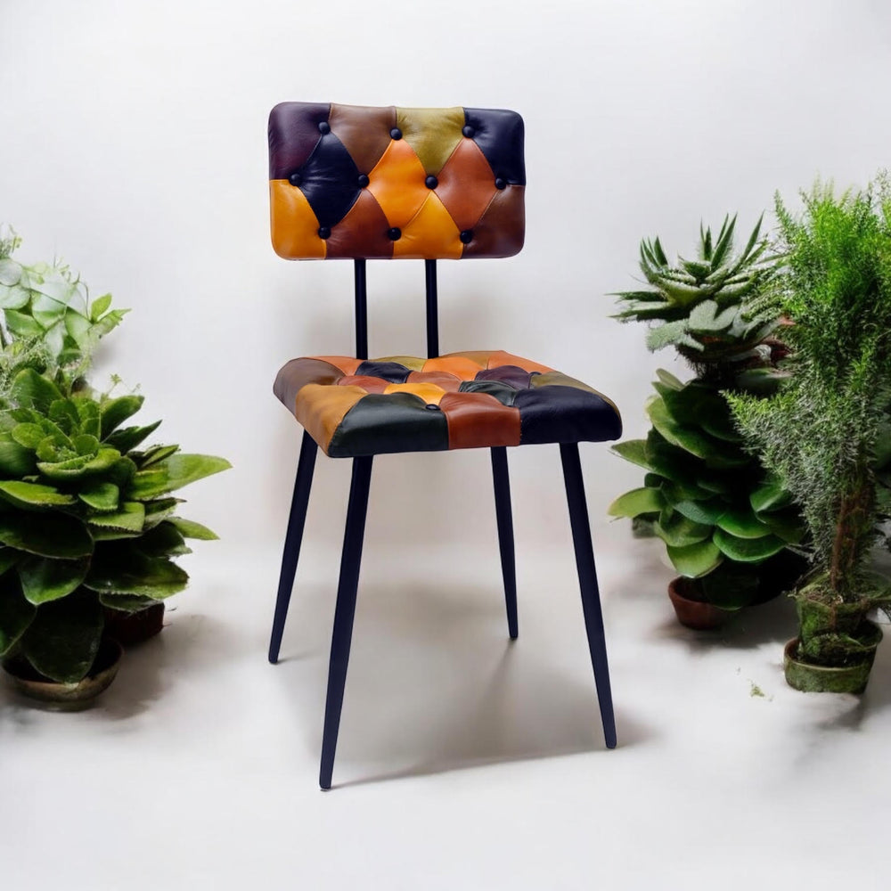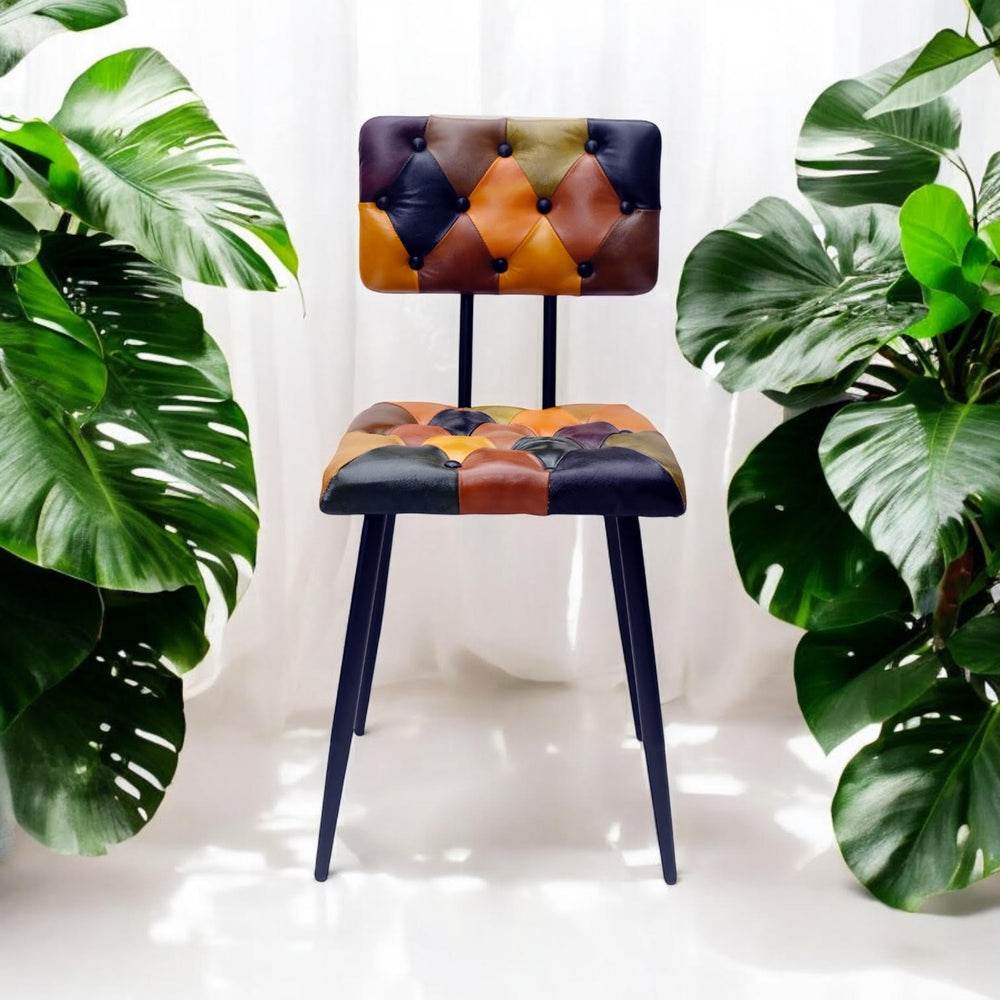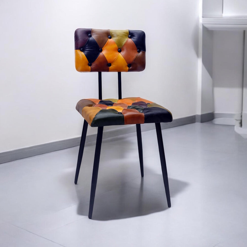 Bring bold sophistication into your space with this Leather Harlequin Chair