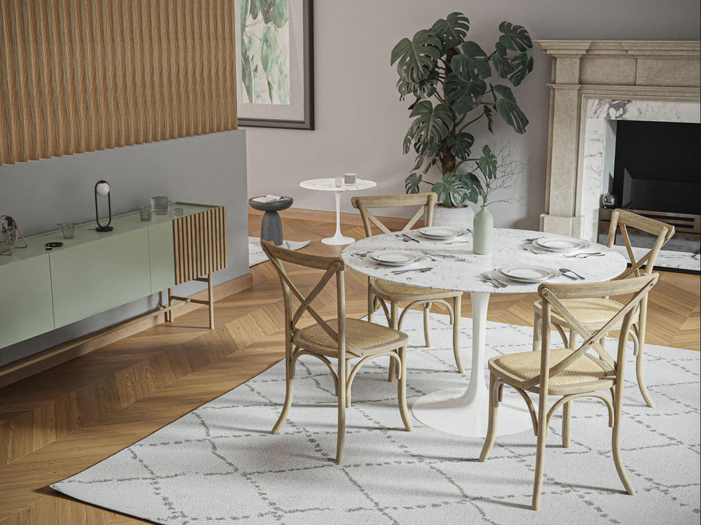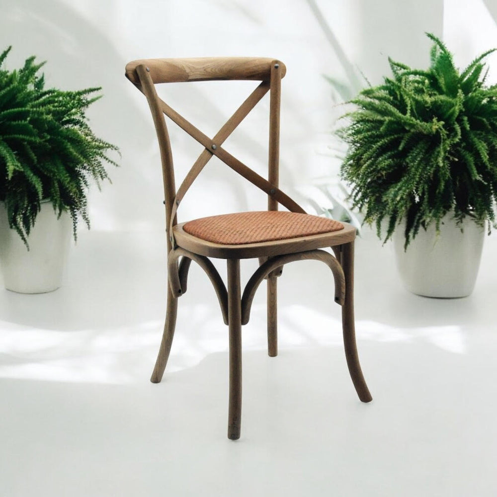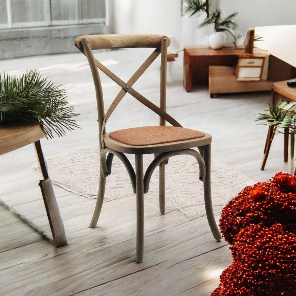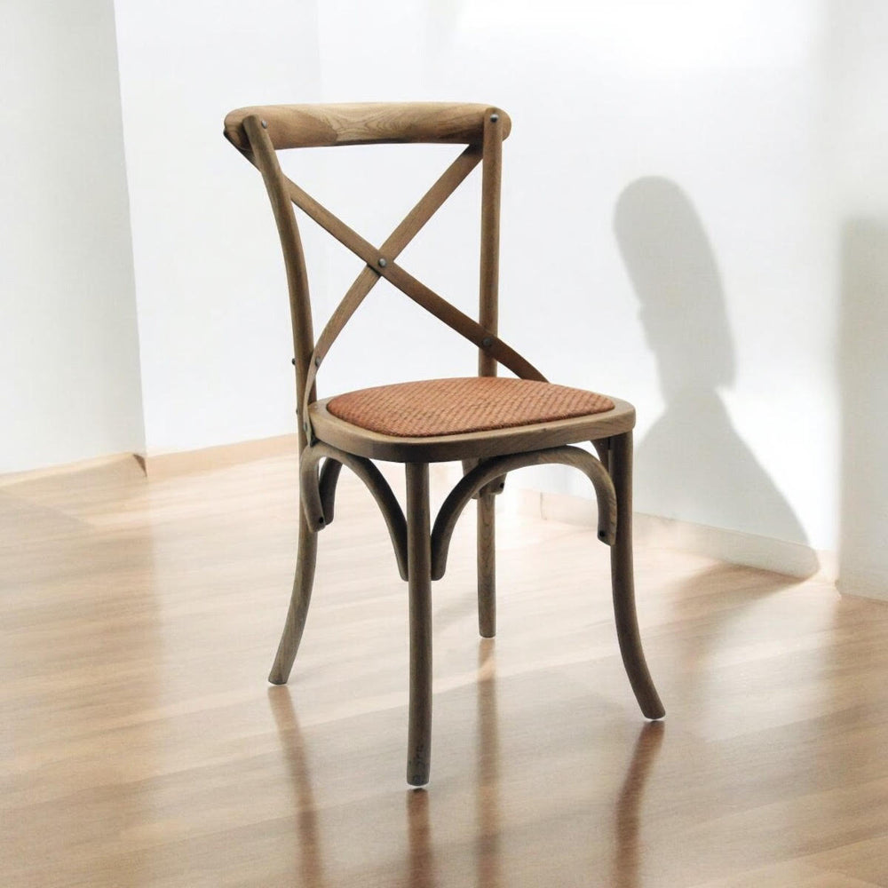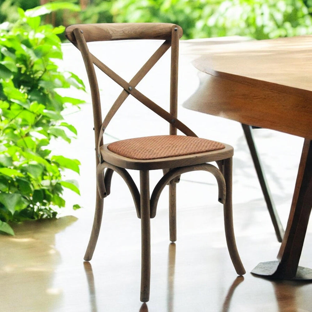 Sit back and relax on this cross-back dining chair. Also stackable for easy storage